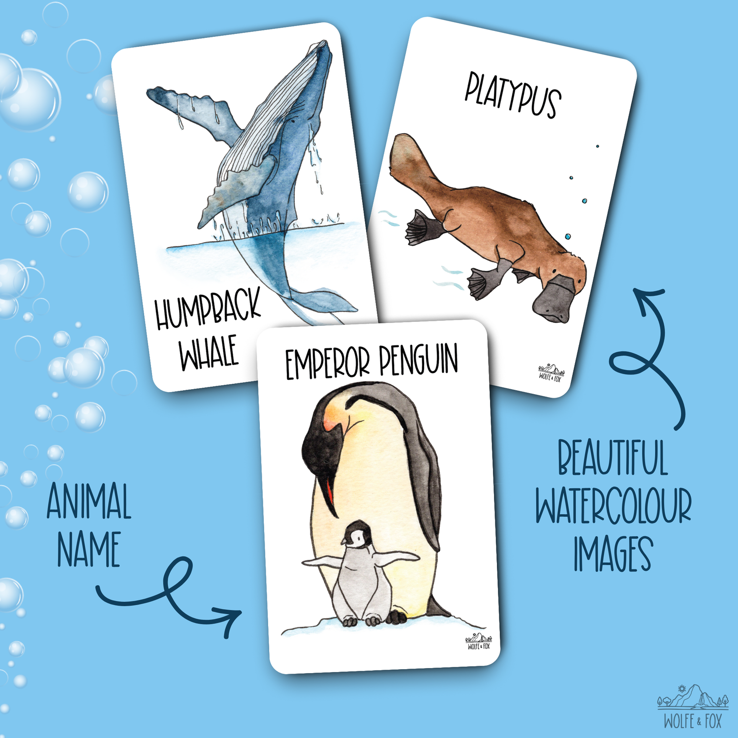 Open the Tidal Treasure set and prepare for a voyage around the world! Each of the 20 featured animals - from the iconic emperor penguin to the unique Australian platypus - is captured in a unique, hand-drawn watercolour image. This tranquil artistic style inspires a connection with the natural world and looks beautiful as wall art. As a 100% Australian-designed, owned and made product, you know the quality is exceptional. These large A6 cards are tactile, turning into a fantastic, screen-free tool for imaginative play and learning about coastal, fresh, and marine waters.