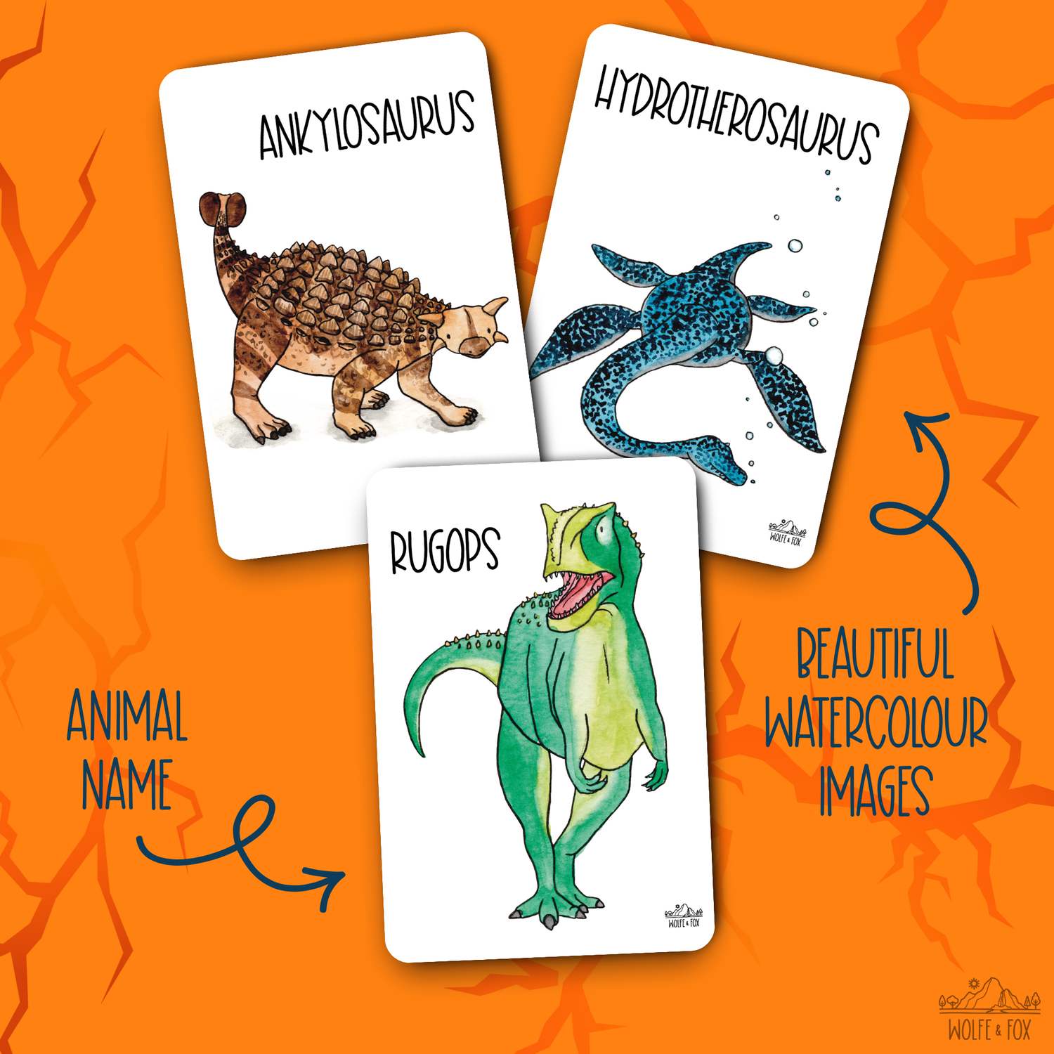 Open the Titans of Time set and travel back millions of years to meet the Earth's greatest creatures! Each of the 20 featured prehistoric animals - from the armoured Ankylosaurus to the fierce Rugops - is captured in a unique, hand-drawn watercolour image. This stunning artistic style brings the wonders of paleontology to life and looks fantastic as wall art. As a 100% Australian-designed, owned and made product, you know the quality is exceptional. These large A6 cards are tactile, turning into an essential tool for imaginative play and learning about every epoch!